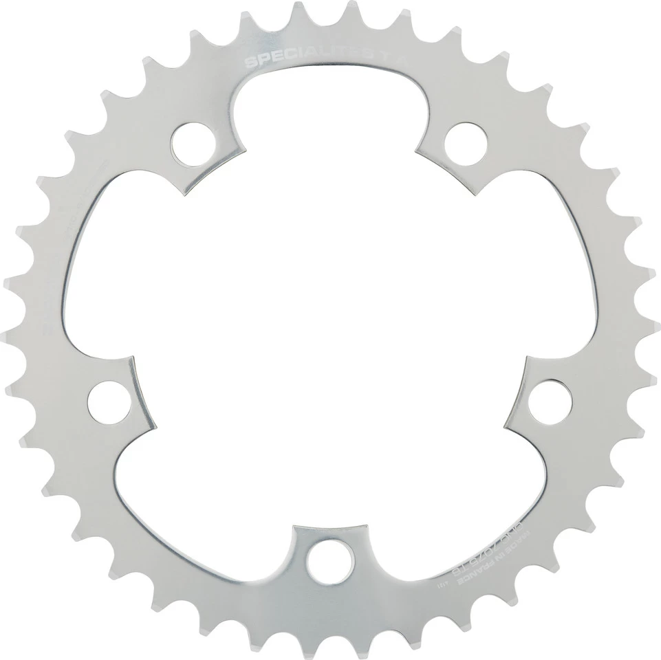 Spezifikationen:Einsatzbereich:RoadBefestigung:110 mm Lochkreis, 5-ArmZähne:33 Z, 34 Z, 36 Z, 38 Z, 39 Z, 40 Z, 42 ZSchaltstufen:2×9-fach, 3×9-fach, 2×10-fach, 3×10-fach, 2×11-fach, 3×11-fachTechnische Daten:Material:Aluminium (7075-T6)Kompatibilität:für Road Compact Kurbeln (110 mm Lochkreis)auch für MTB Kurbeln vor 1993 mit 110 mm Lochkreis und Lochabstand 65 mm (alter Shimano MTB-Standard)Position: innenFeatures:Lochabstand 65 mmschwarz oder silbern eloxiertdesignt und hergestellt in Frankreich